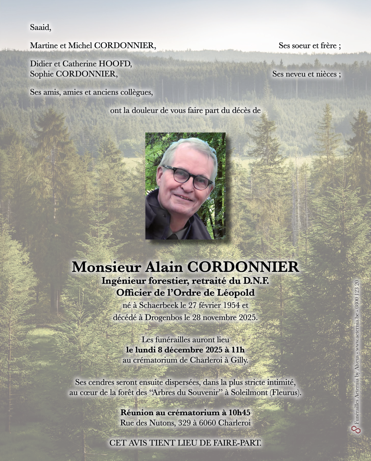 Décédé à Drogenbos (1620) le vendredi 28 novembre 2025 à l'âge de 71 ans