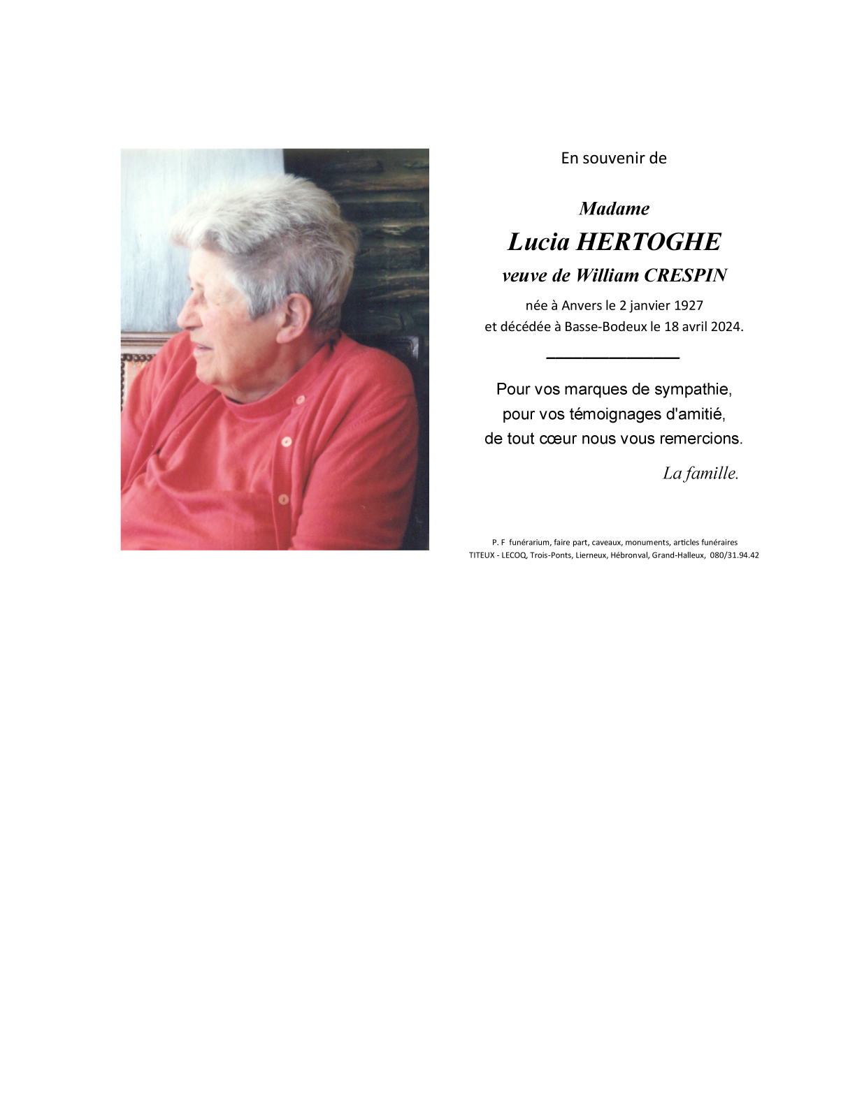 Died in Basse-Bodeux (4983) on 18 April 2024 at the age of 97 years