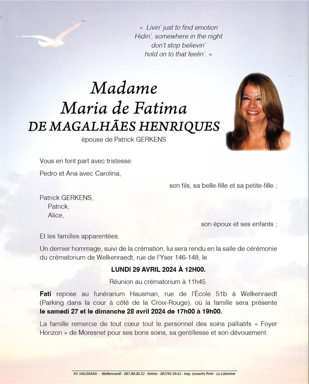Madame Maria de Fatima DE MAGALHÃES HENRIQUES