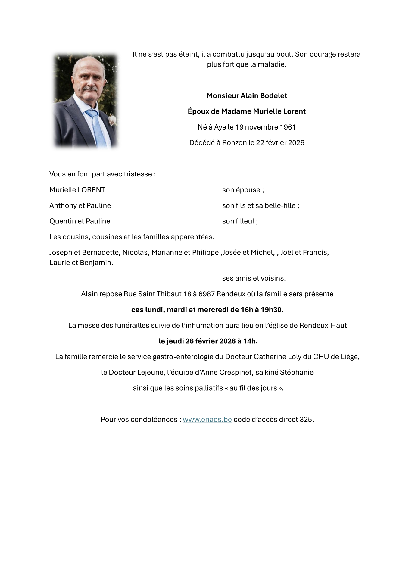 Overleden te Rendeux (6987) op zondag 22 februari 2026 op 64-jarige leeftijd