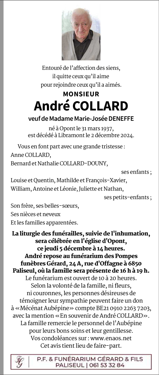 Fallecido en Libramont (6800) el lunes, 2 de diciembre de 2024 a la edad de 87 años