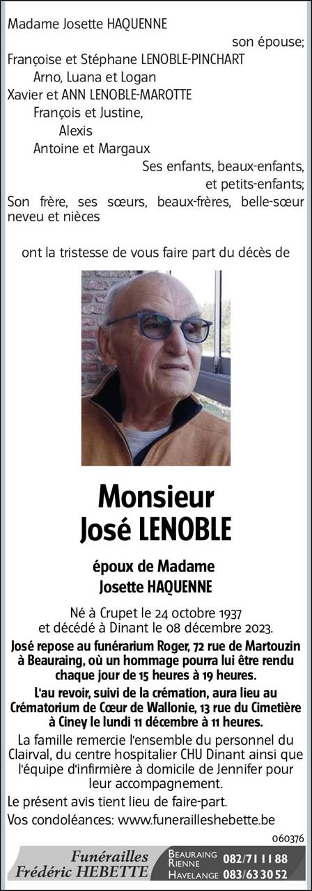 Died in Dinant (5500) on 08 December 2023 at the age of 83 years