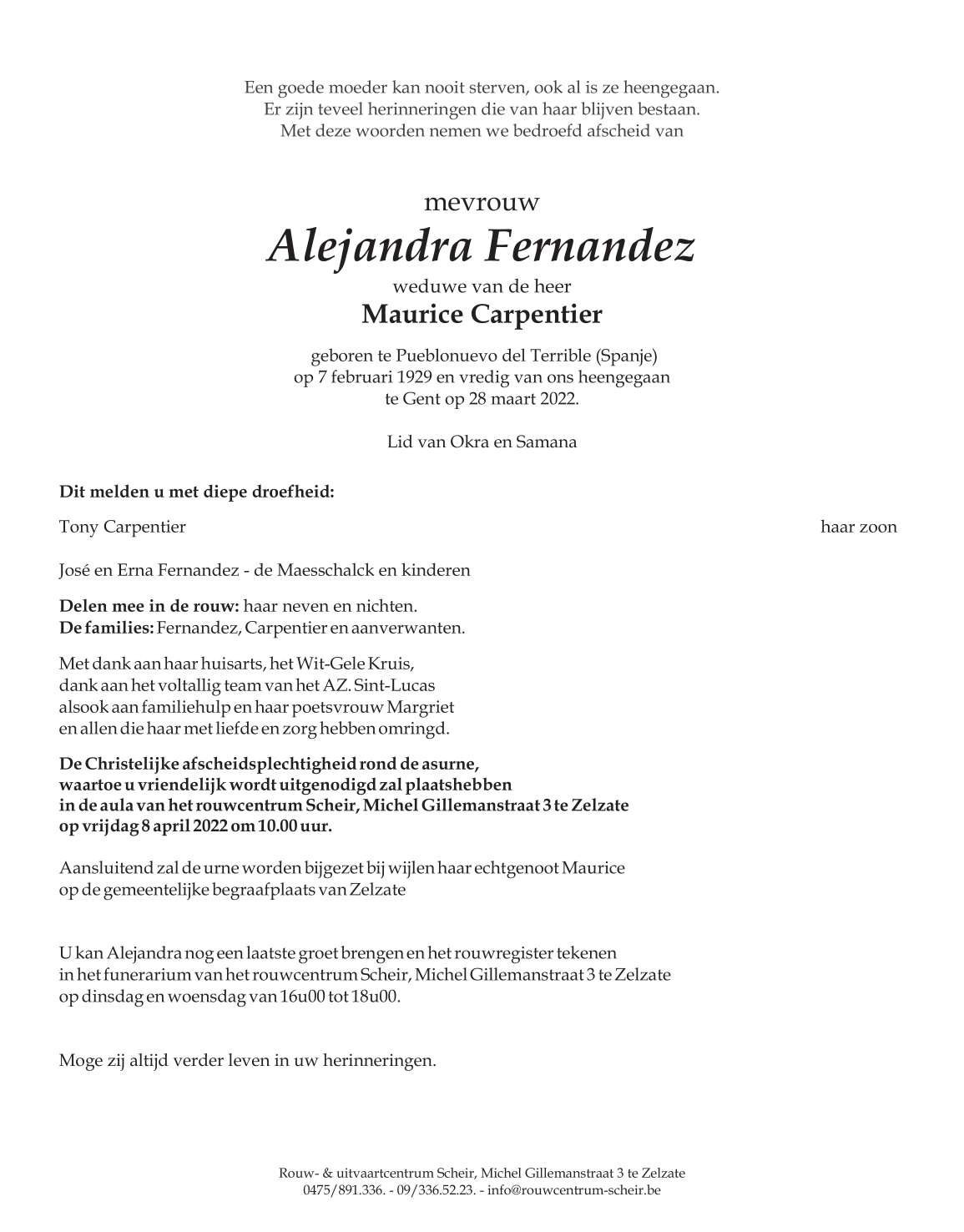 Overleden te Gent (9000) op maandag 28 maart 2022 op 93-jarige leeftijd