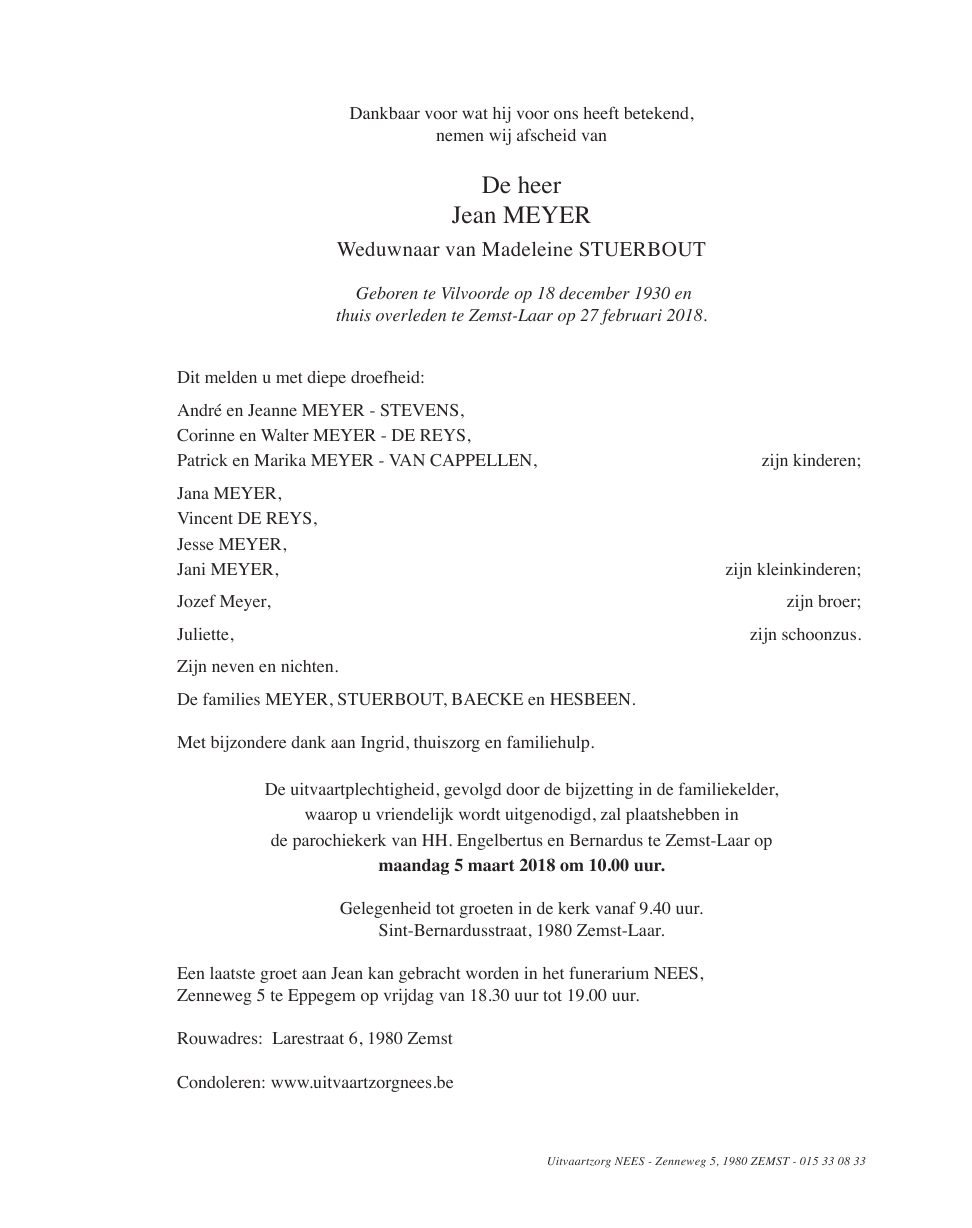 Died in Zemst-Laar (1980) on 27 February 2018 at the age of 87 years