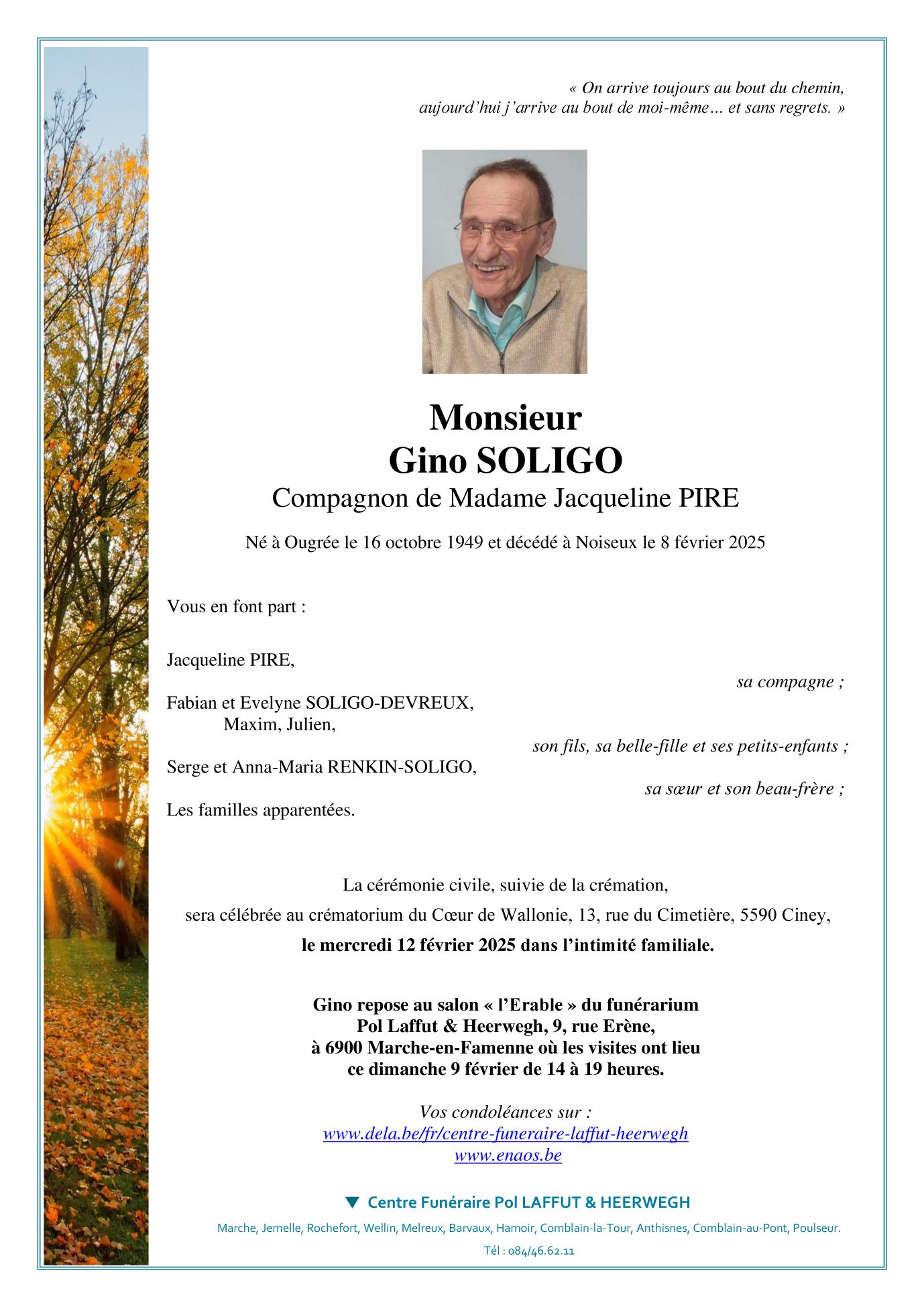Died in Noiseux (5377) on 08 February 2025 at the age of 75 years