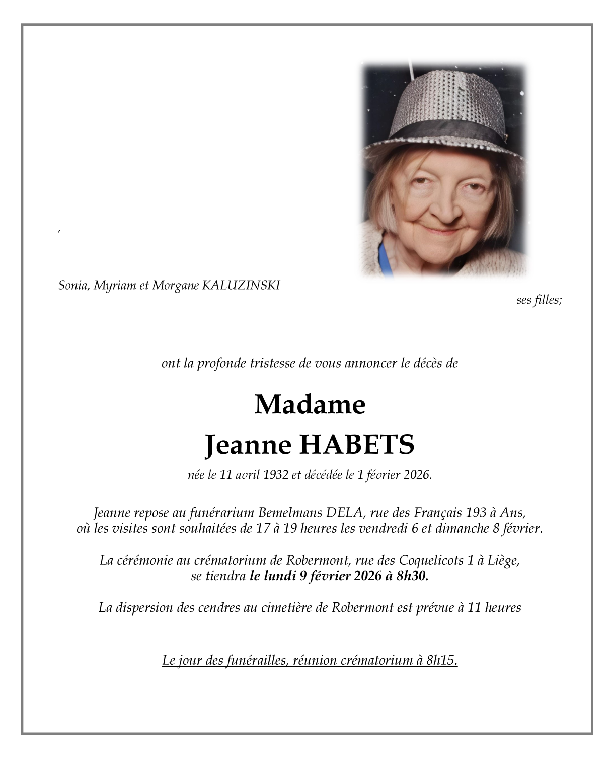 Décédée à Verviers (4800) le dimanche 1 février 2026 à l'âge de 93 ans