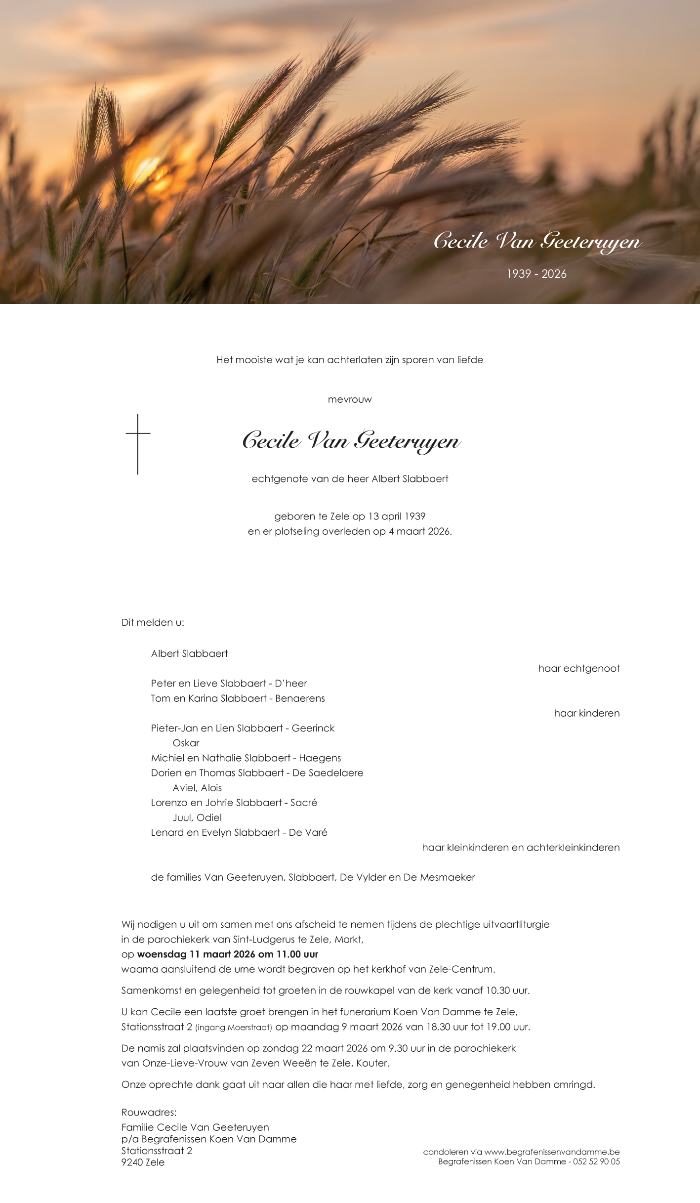Died in Zele (9240) on 04 March 2026 at the age of 86 years