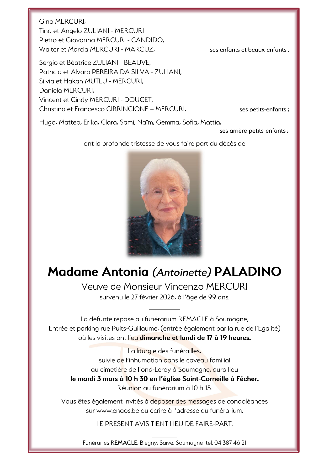 Overleden te Chênée (4032) op vrijdag 27 februari 2026 op 99-jarige leeftijd
