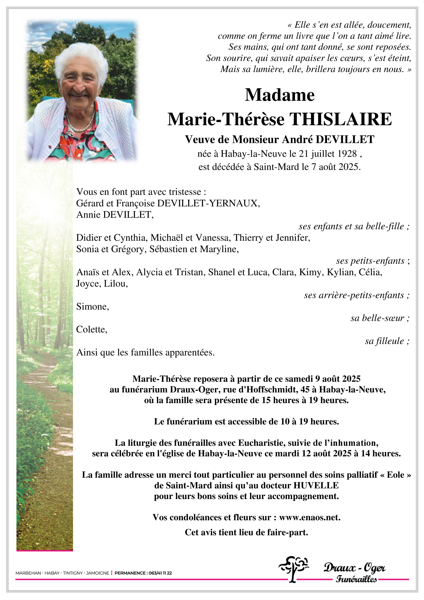 Died in Saint-Mard (6762) on 07 August 2025 at the age of 97 years