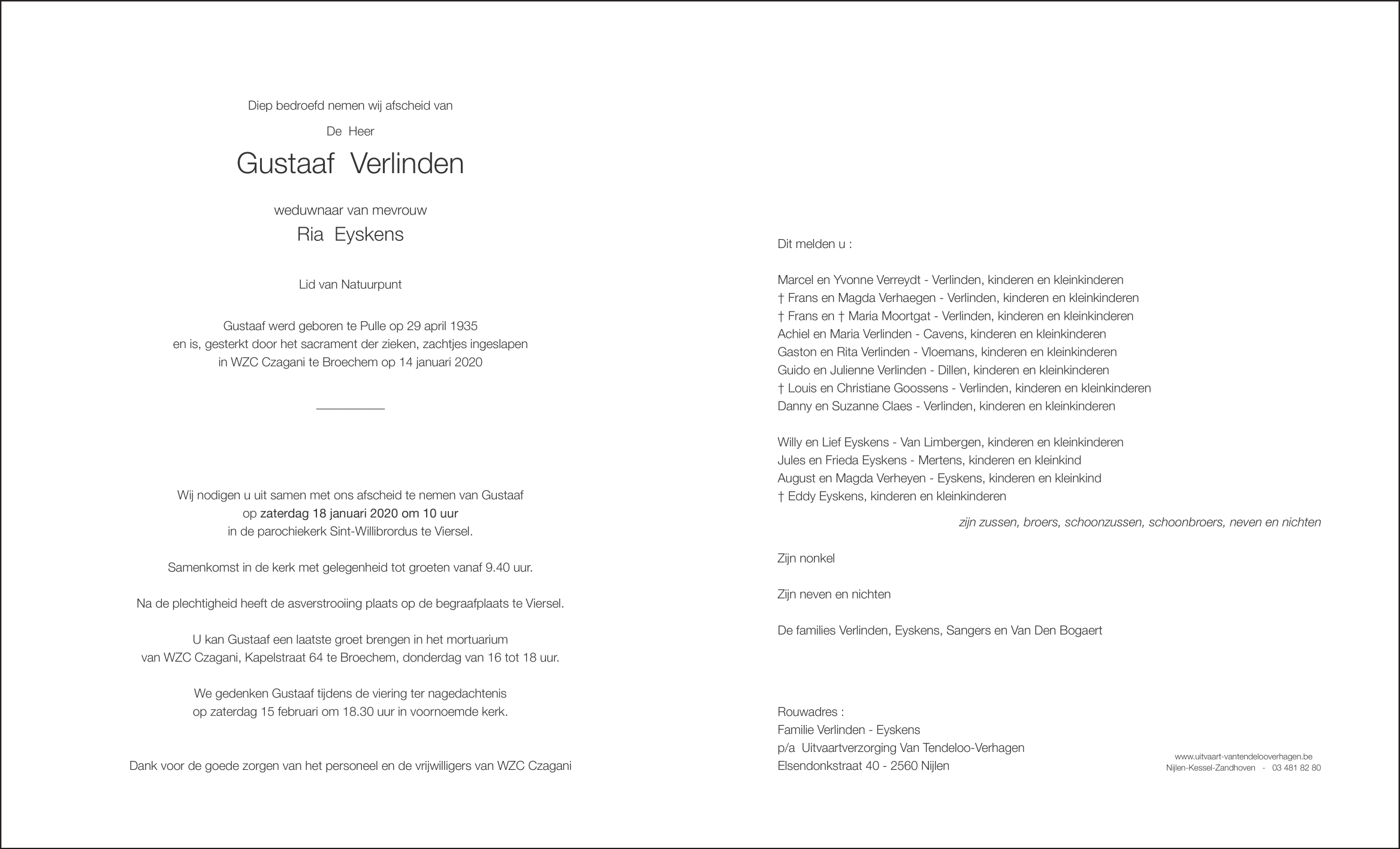 Died in Broechem (2520) on 14 January 2020 at the age of 84 years