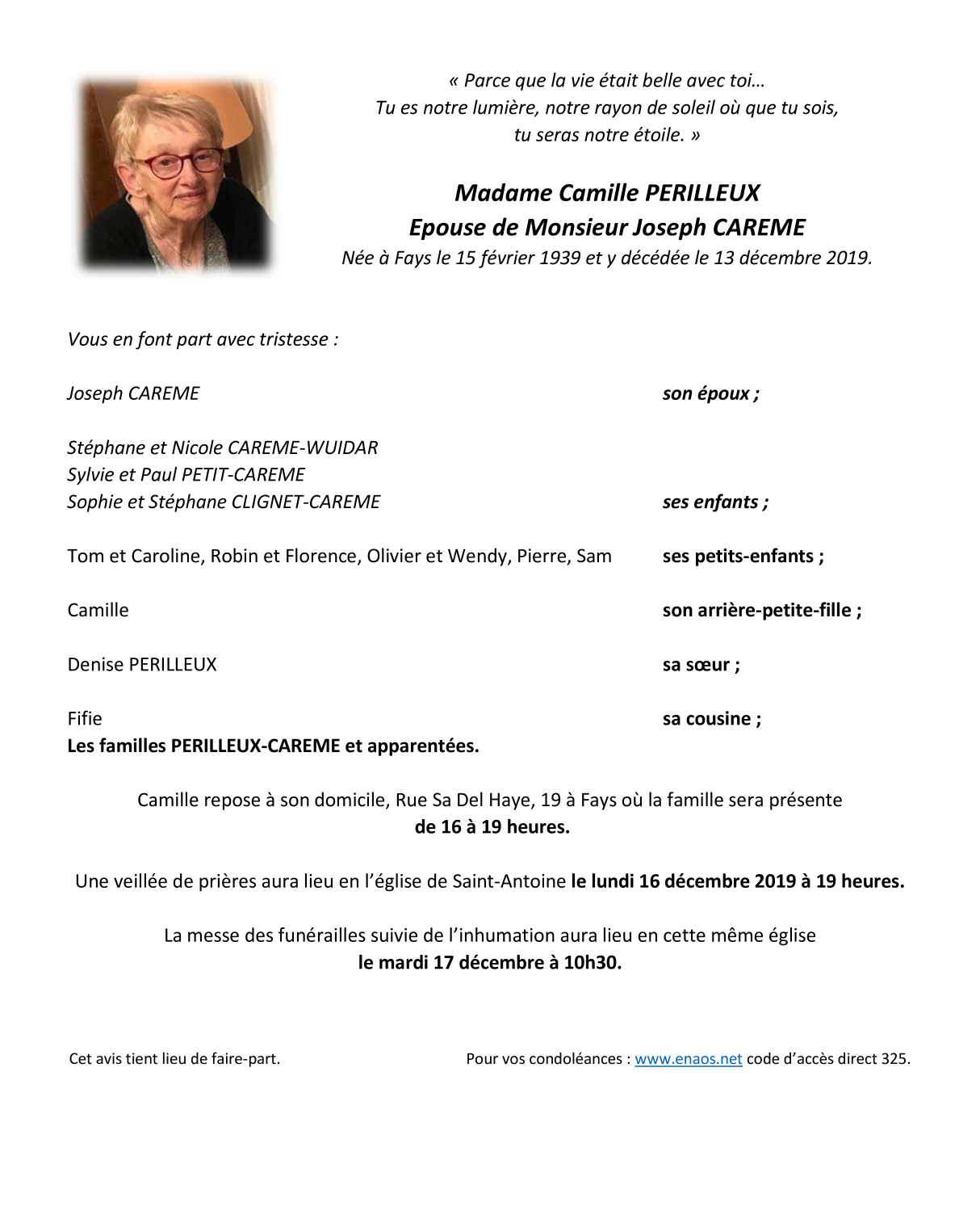 Overleden te Fays (6960) op vrijdag 13 december 2019 op 80-jarige leeftijd