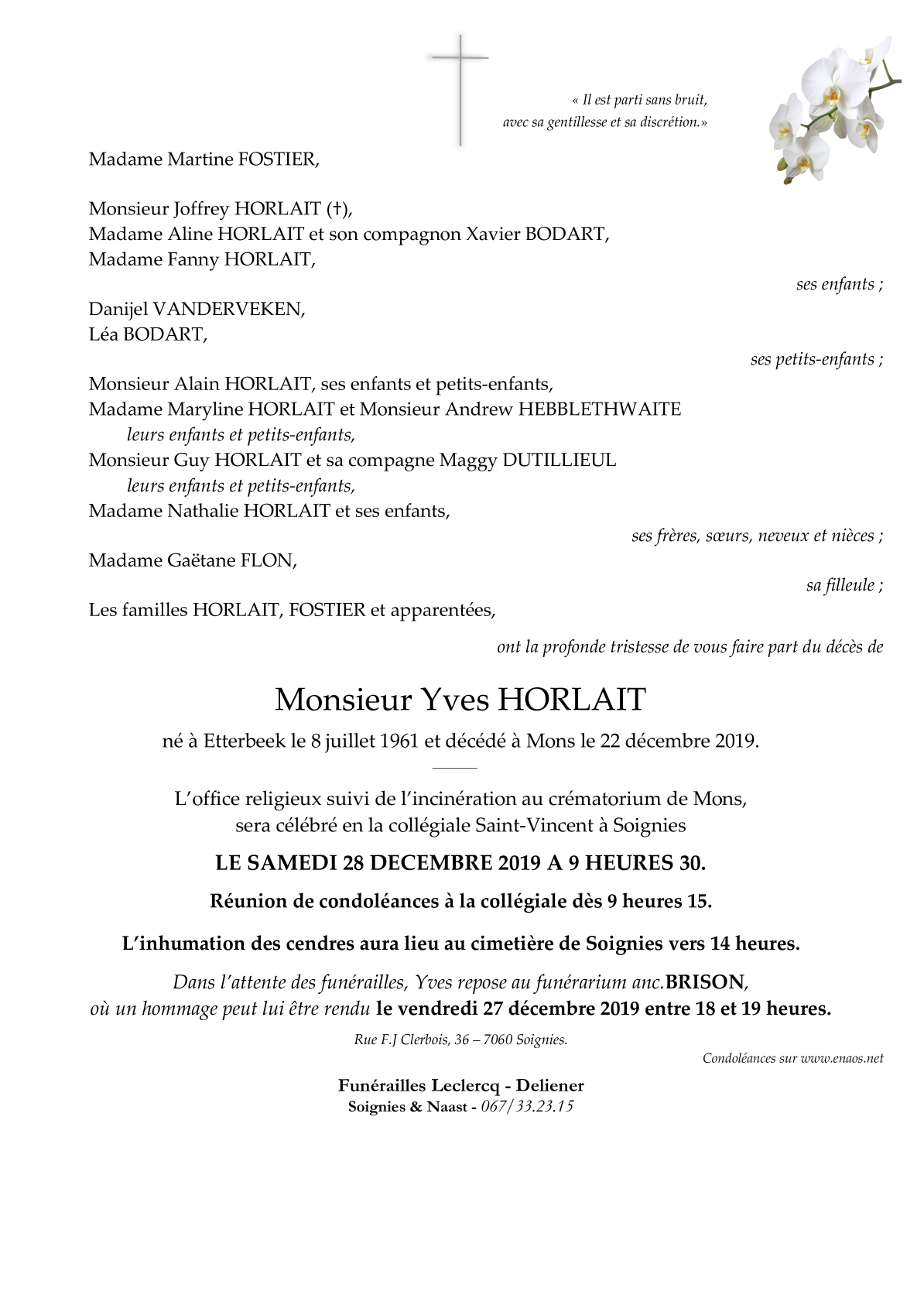 Overleden te Mons (7000) op zondag 22 december 2019 op 58-jarige leeftijd