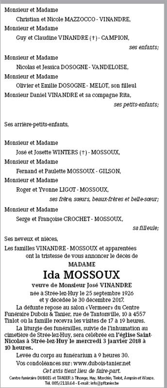 Overleden te Strée-lez-Huy (4577) op zaterdag 30 december 2017 op 91-jarige leeftijd