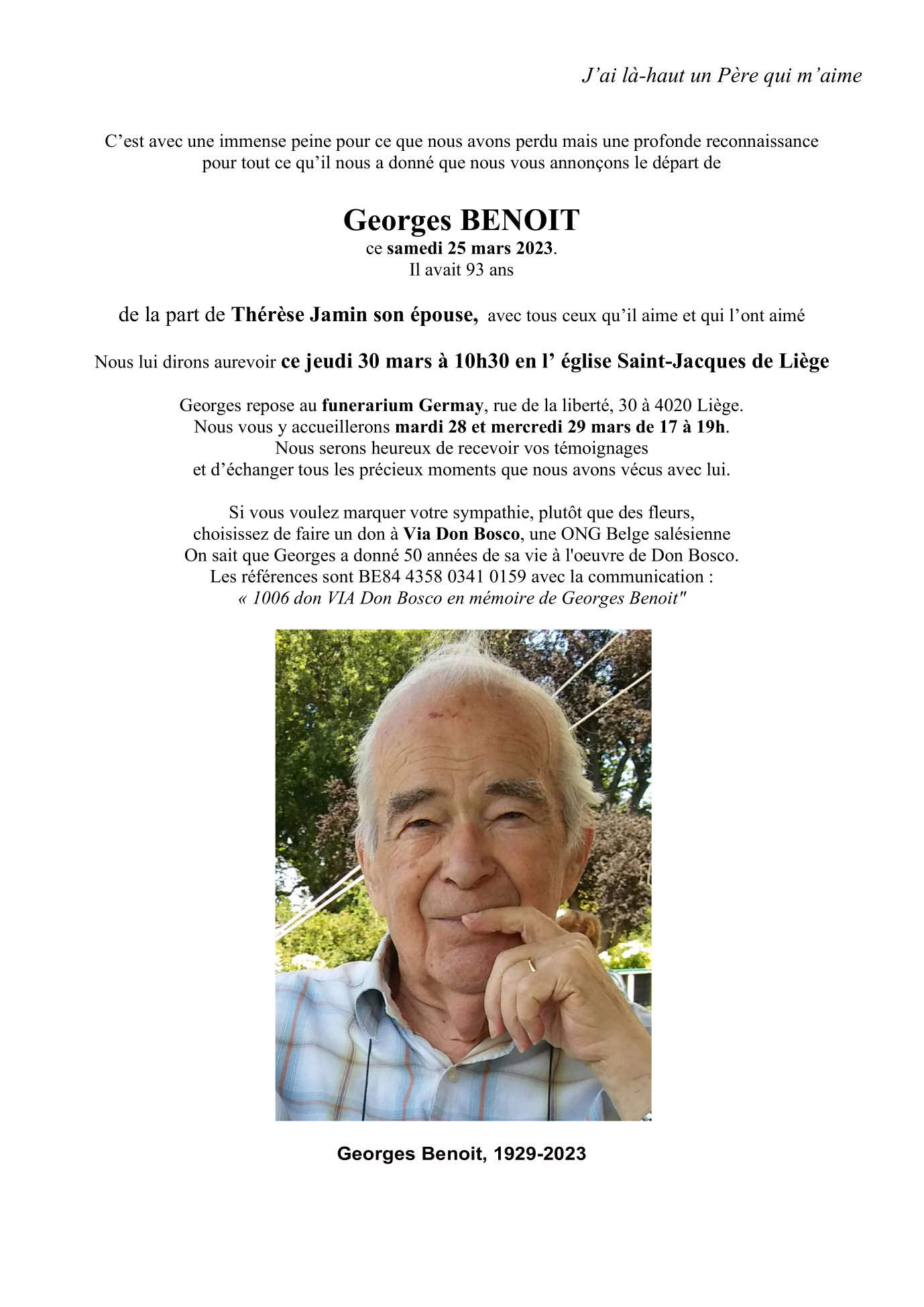 Fallecido en Liège (4020) el sábado, 25 de marzo de 2023 a la edad de 93 años