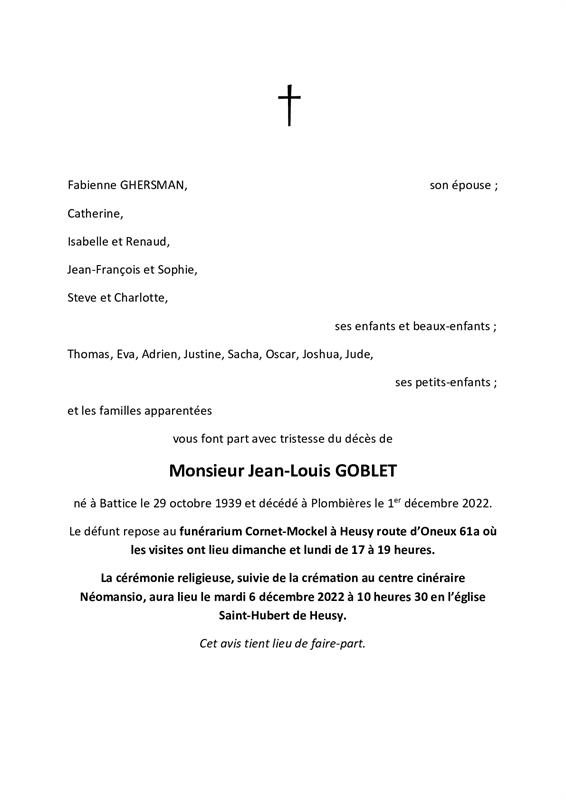 Fallecido en Plombières (4850) el jueves, 1 de diciembre de 2022 a la edad de 83 años