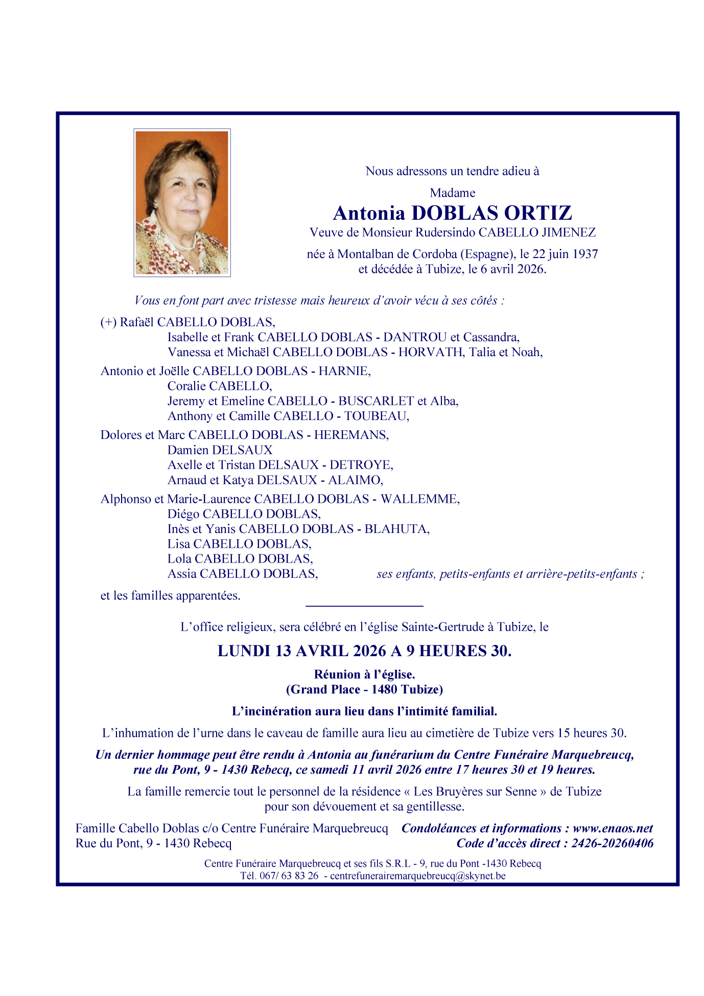 Died in Tubize (1480) on 06 April 2026 at the age of 88 years