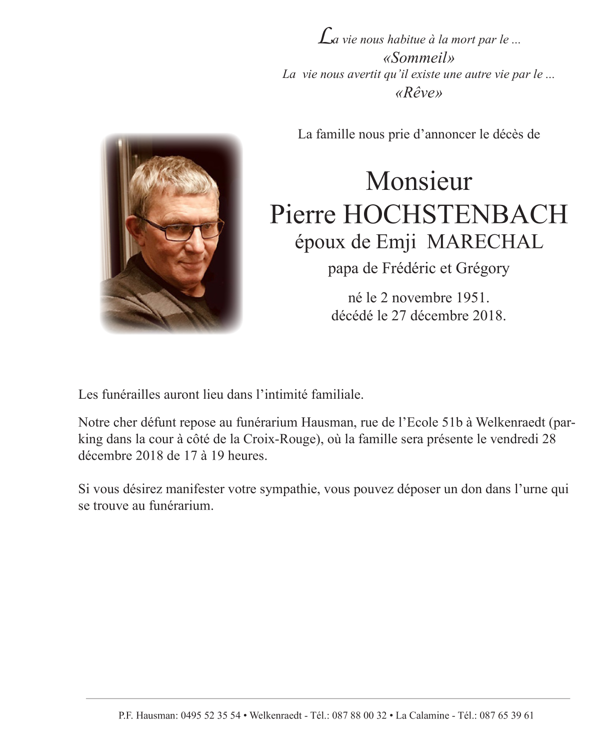 Décédé à Verviers (4800) le jeudi 27 décembre 2018 à l'âge de 67 ans