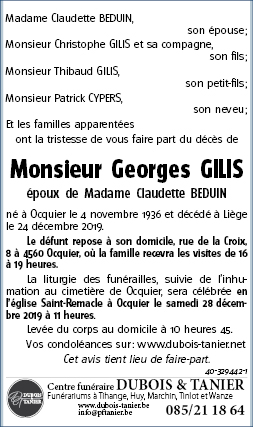 Décédé à Liège (4000) le mardi 24 décembre 2019 à l'âge de 83 ans