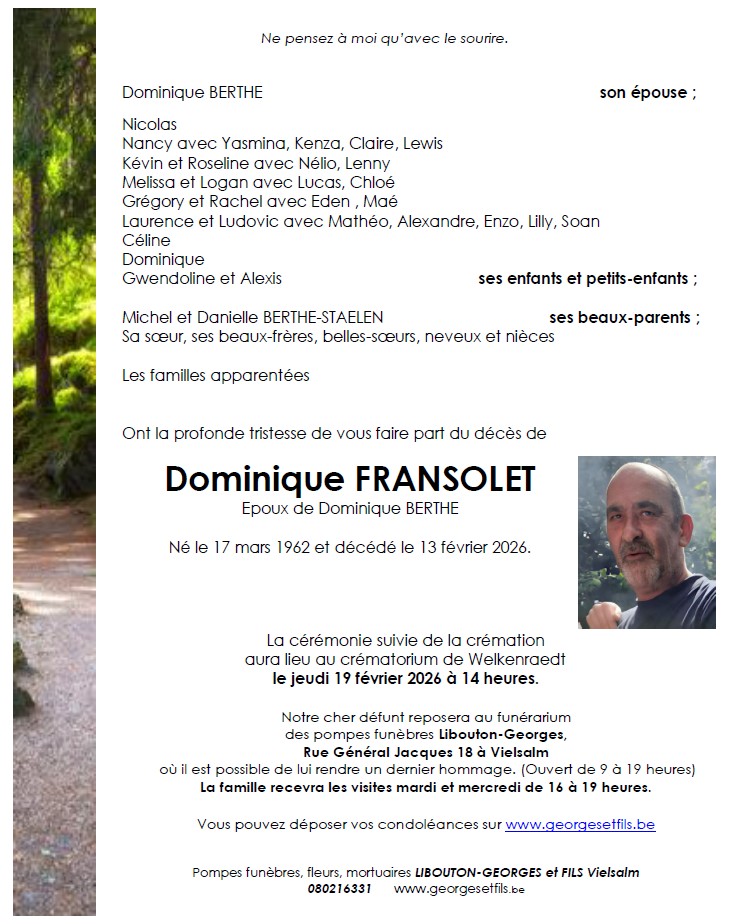 Décédé à Lierneux (4990) le vendredi 13 février 2026 à l'âge de 63 ans