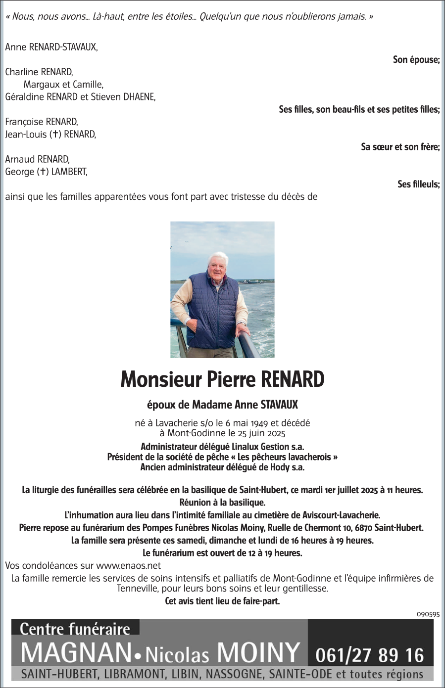 Né à Lavacherie (6681) le vendredi 6 mai 1949