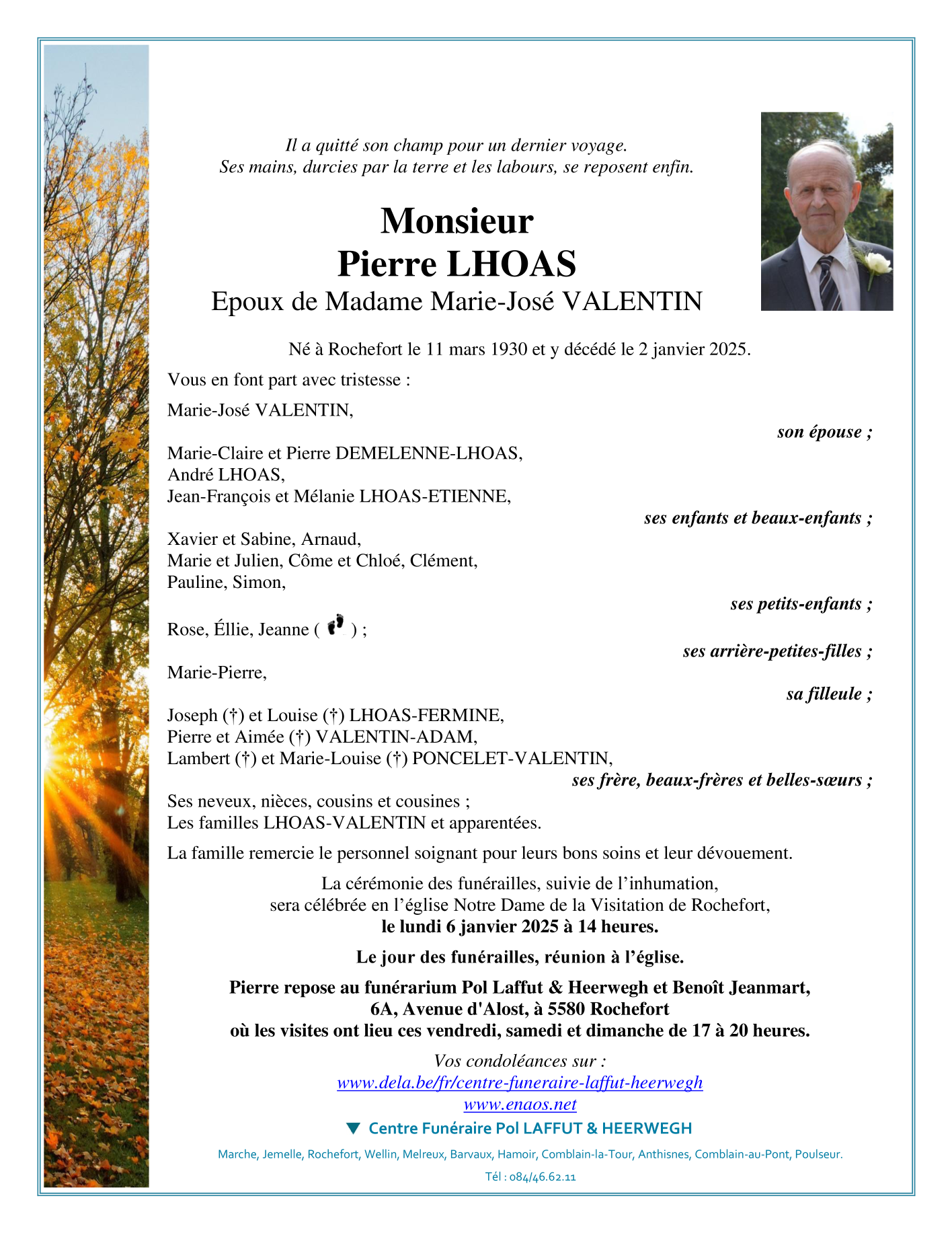 Décédé à Rochefort (5580) le jeudi 2 janvier 2025 à l'âge de 94 ans