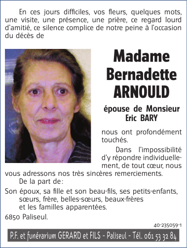 Née à Chairière (5550) le dimanche 28 mars 1954