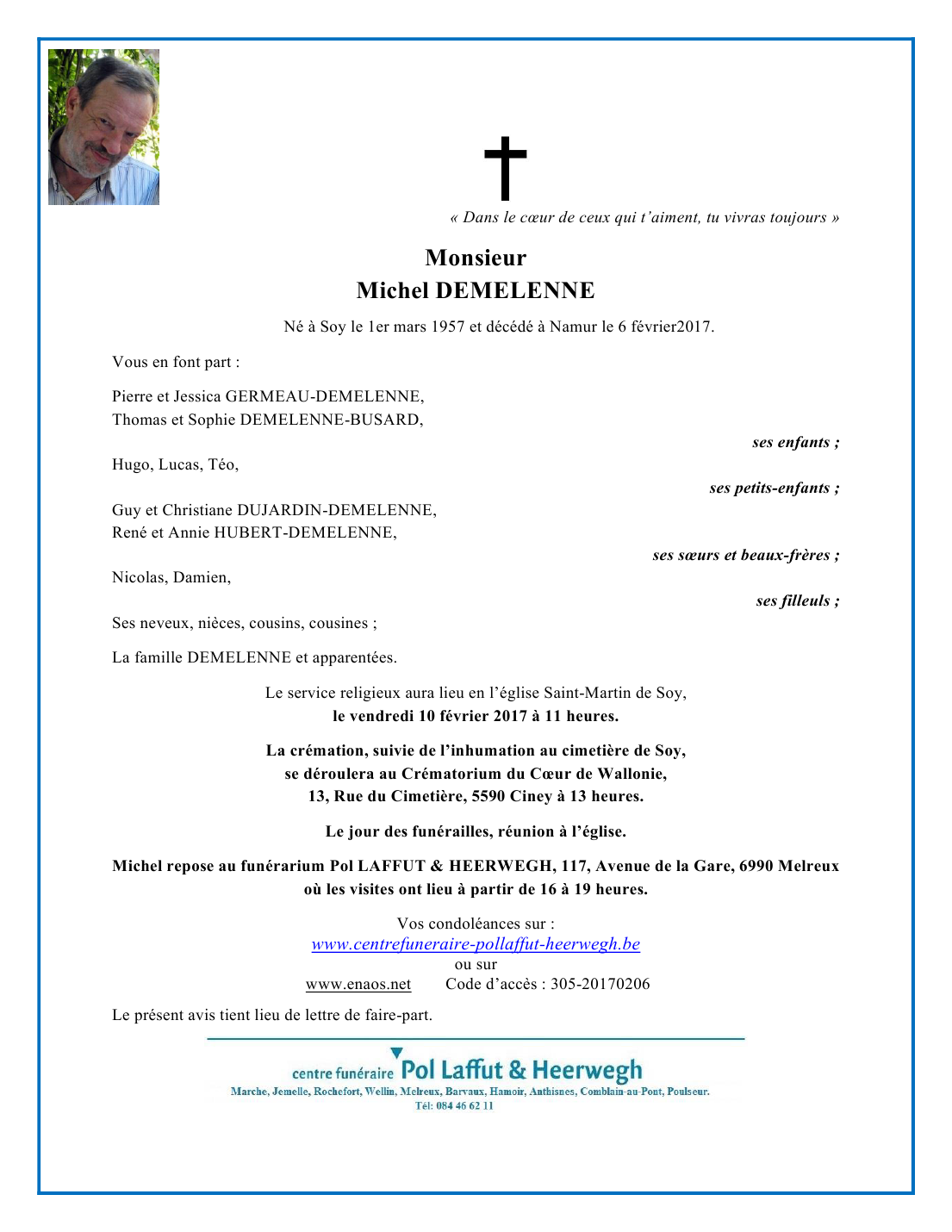 Overleden te Namur (5000) op maandag 6 februari 2017 op 59-jarige leeftijd