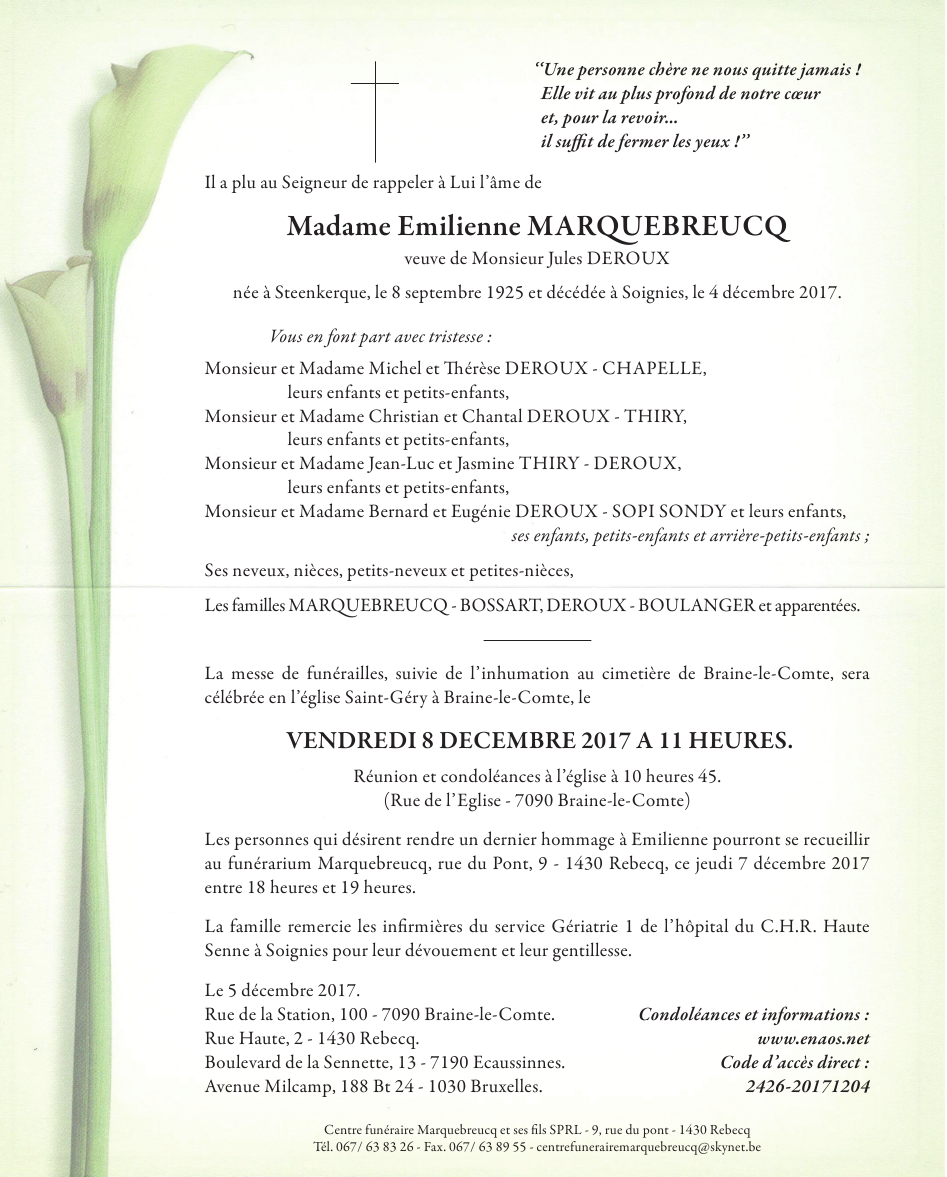 Died in Soignies (7060) on 04 December 2017 at the age of 92 years