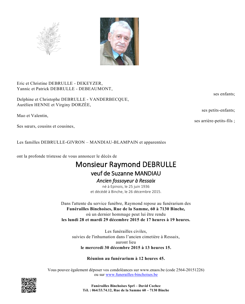 Fallecido en Binche (7130) el sábado, 26 de diciembre de 2015 a la edad de 79 años