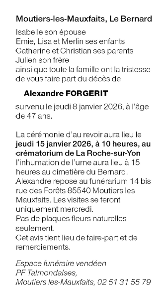 Fallecido en Le Givre (85540, Francia) el jueves, 8 de enero de 2026 a la edad de 47 años