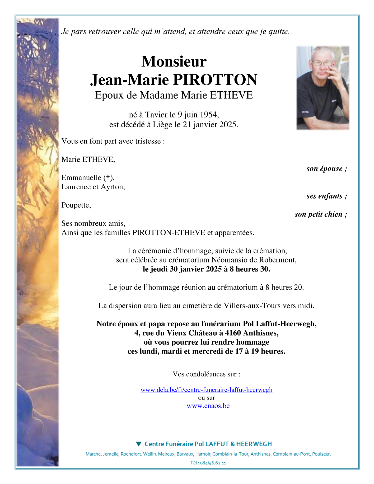 Né à Tavier (4163) le mercredi 9 juin 1954
