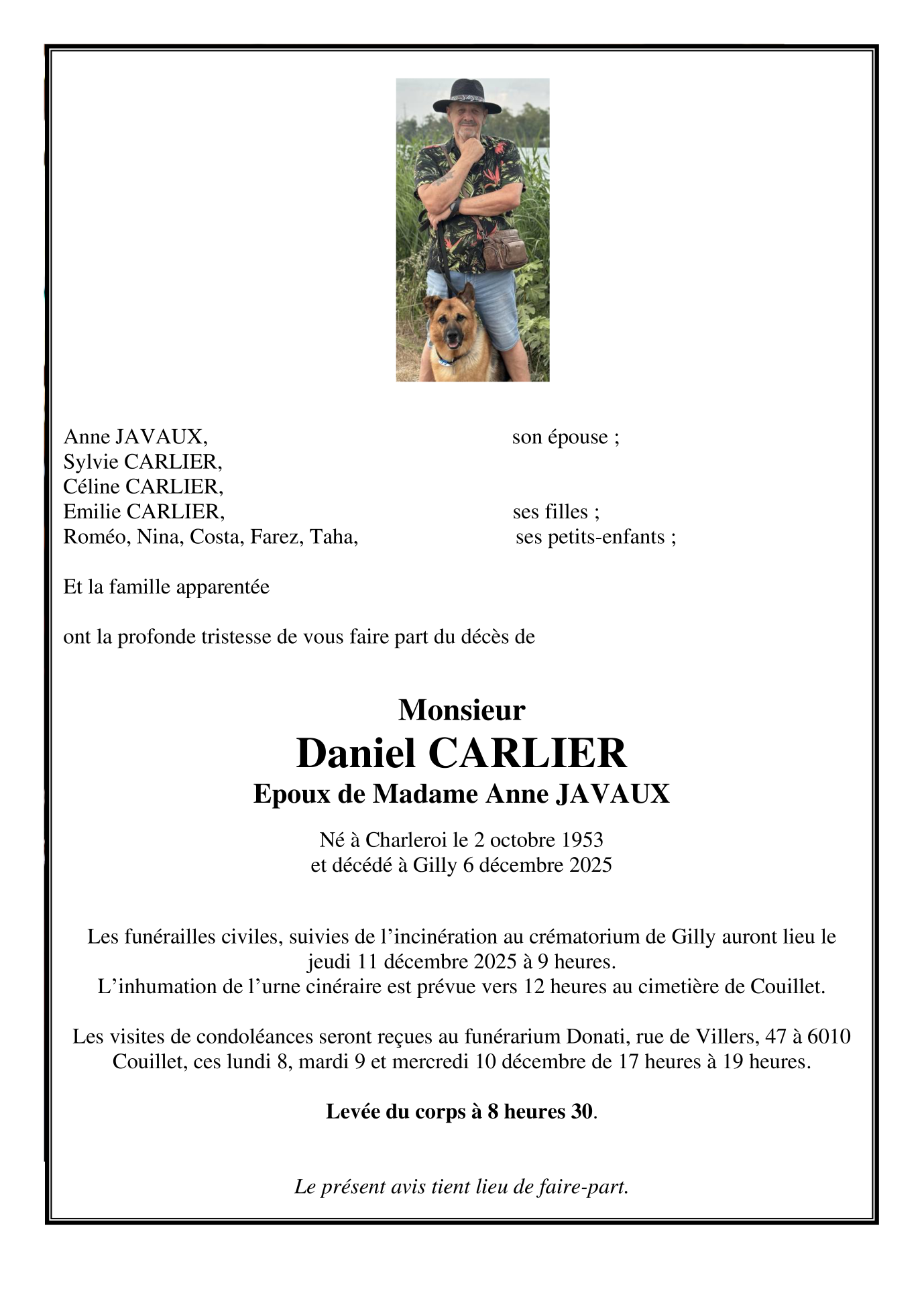Died in Gilly (6060) on 06 December 2025 at the age of 72 years