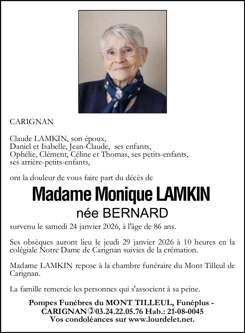 Madame Monique LAMKIN née BERNARD