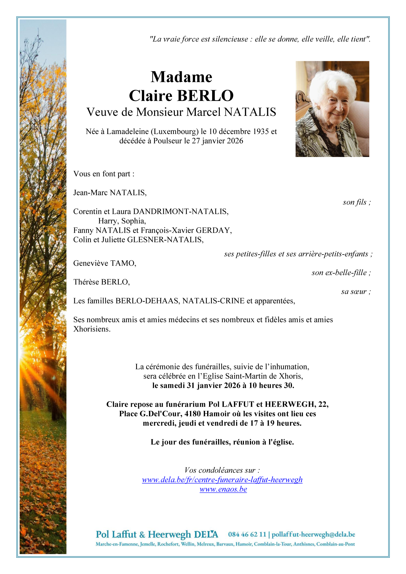 Veuve de Monsieur Marcel NATALIS