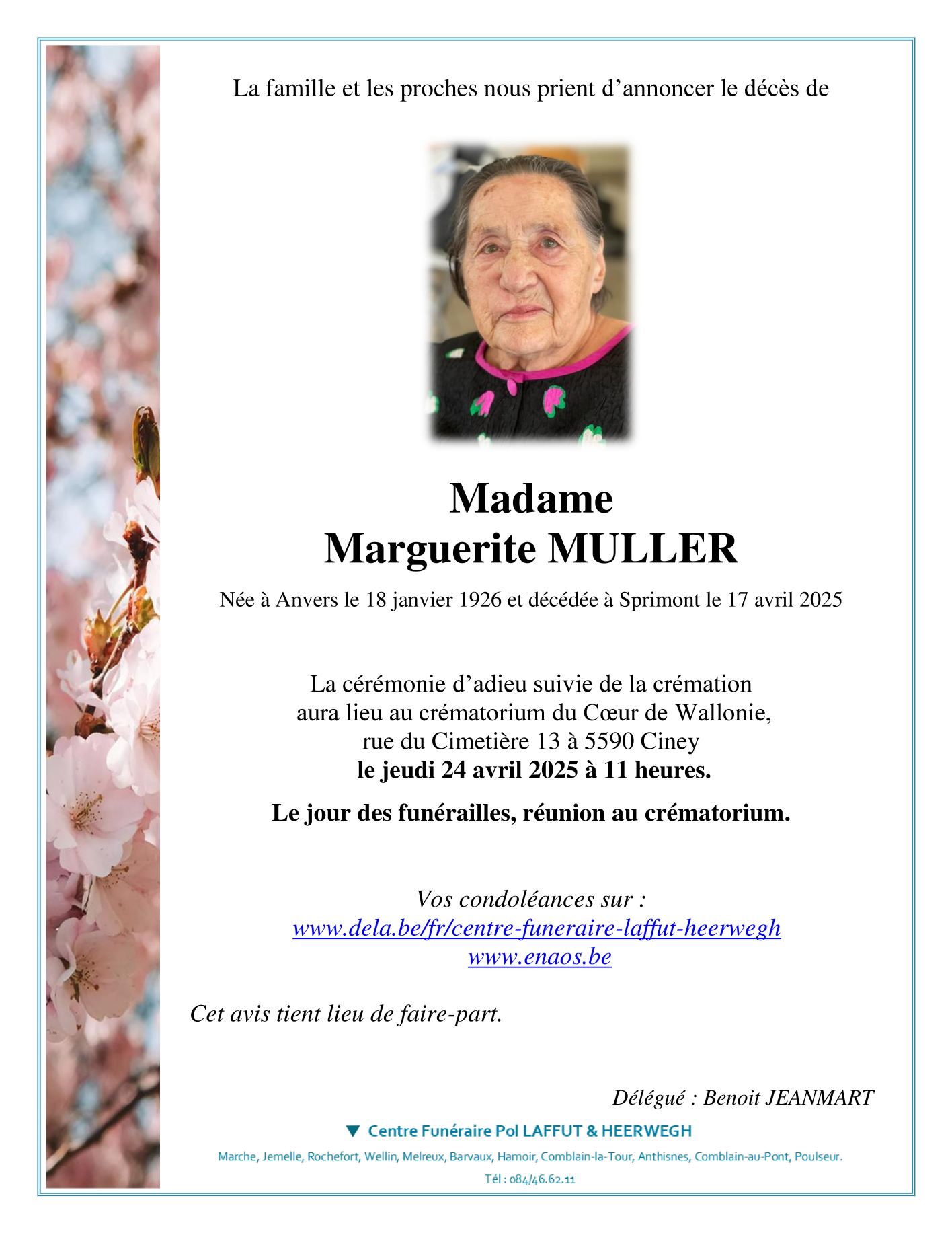 Fallecida en Sprimont (4140) el jueves, 17 de abril de 2025 a la edad de 99 años