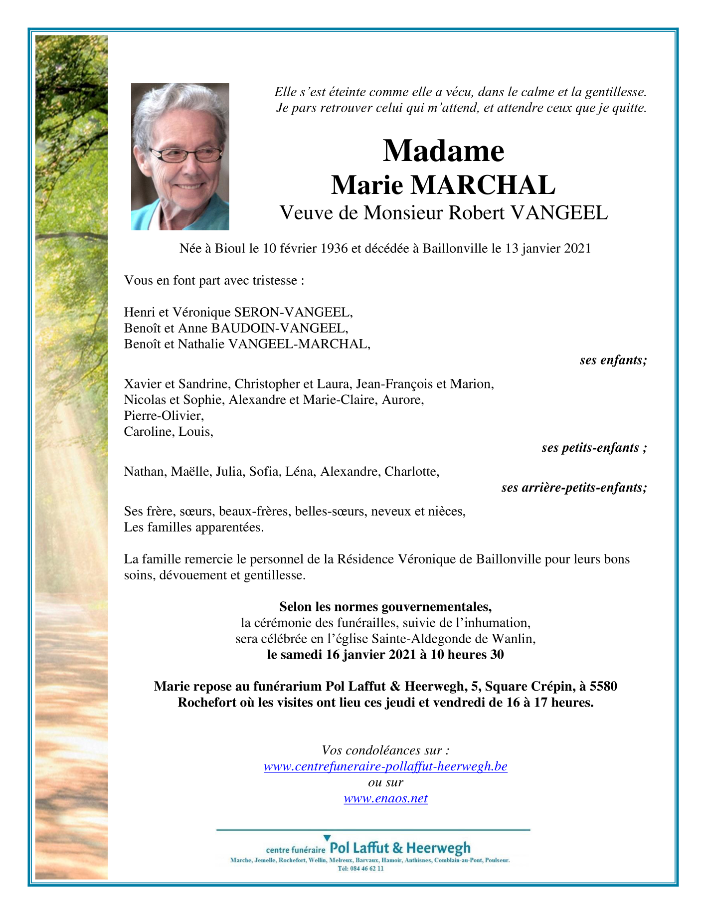 Viuda de Monsieur Robert VANGEEL