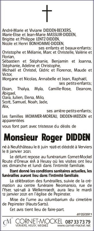 Décédé à Verviers (4800) le vendredi 8 janvier 2021 à l'âge de 92 ans