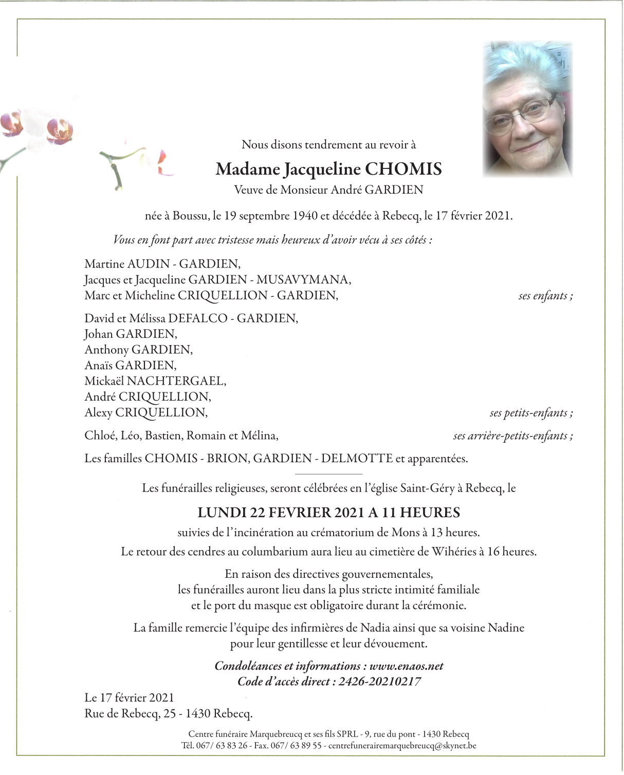 Madame Jacqueline CHOMIS