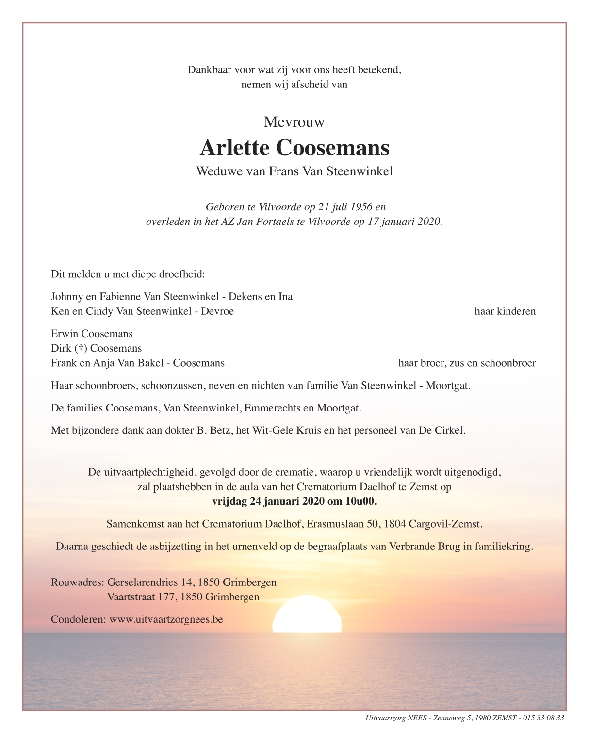 Viuda de De heer Frans Van Steenwinkel
