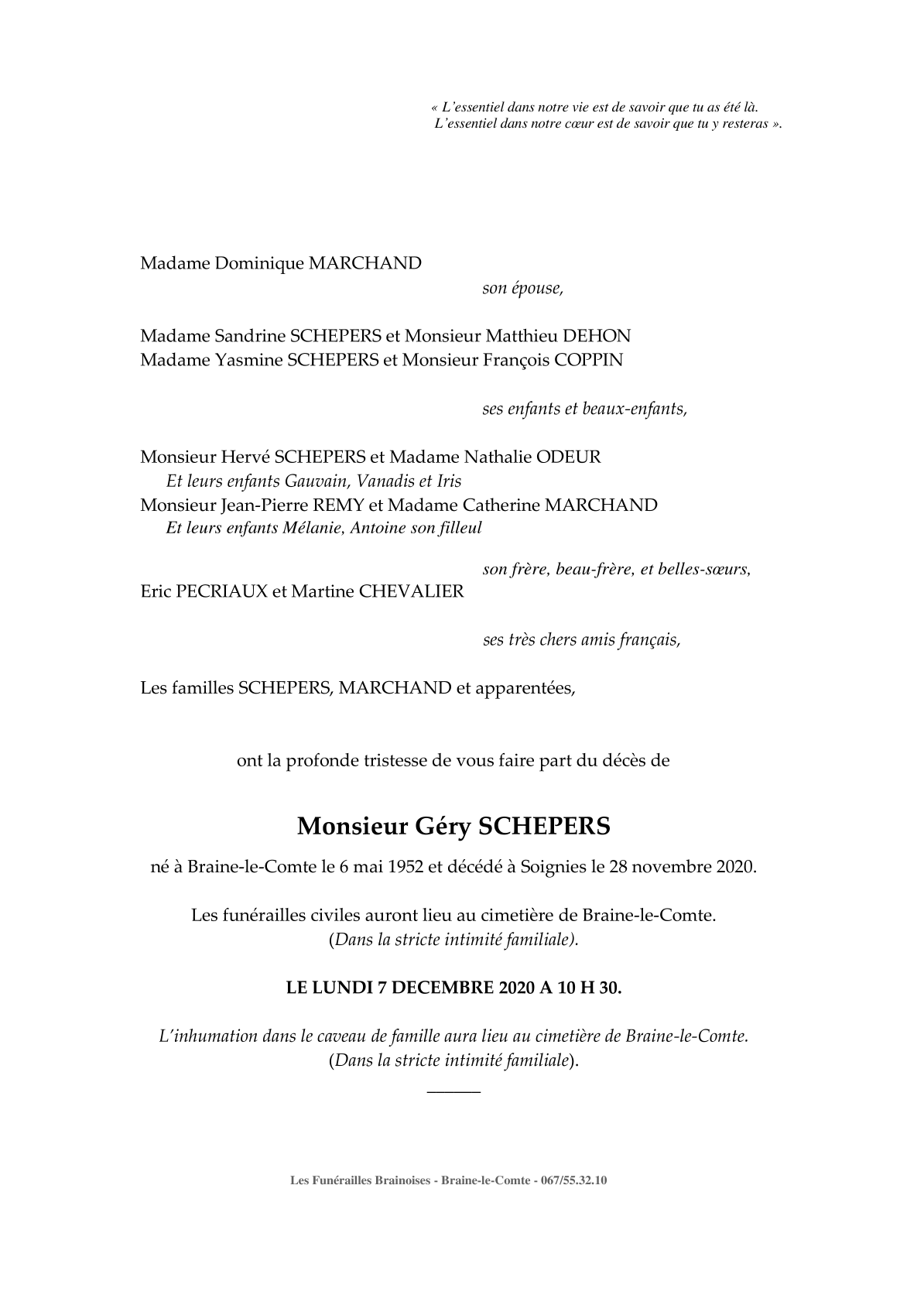 Décédé à Soignies (7060) le samedi 28 novembre 2020 à l'âge de 68 ans