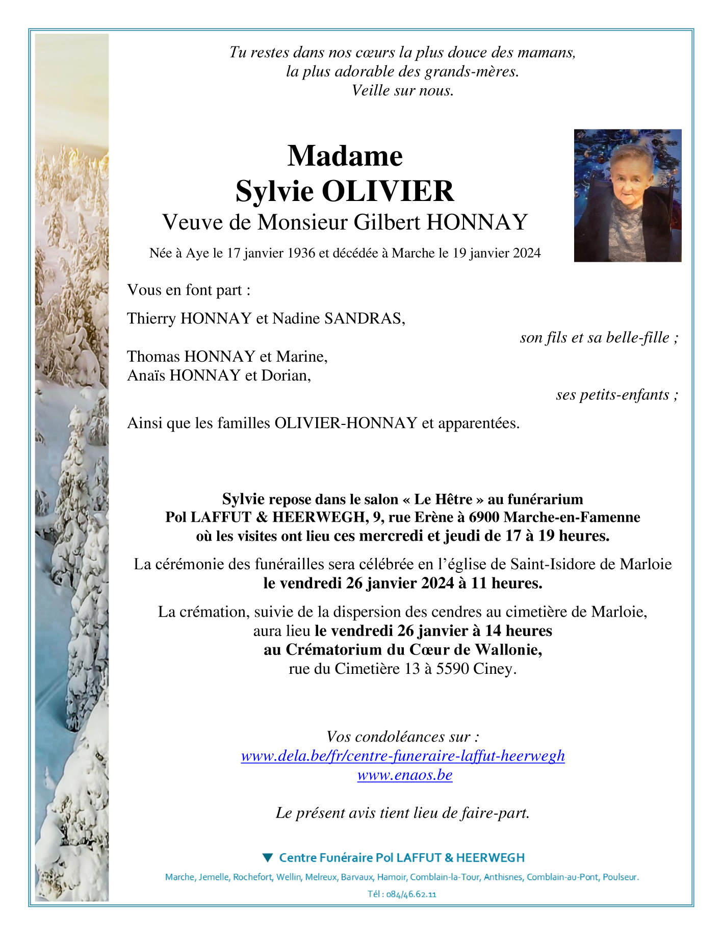 Overleden te Marche-en-Famenne (6900) op vrijdag 19 januari 2024 op 88-jarige leeftijd