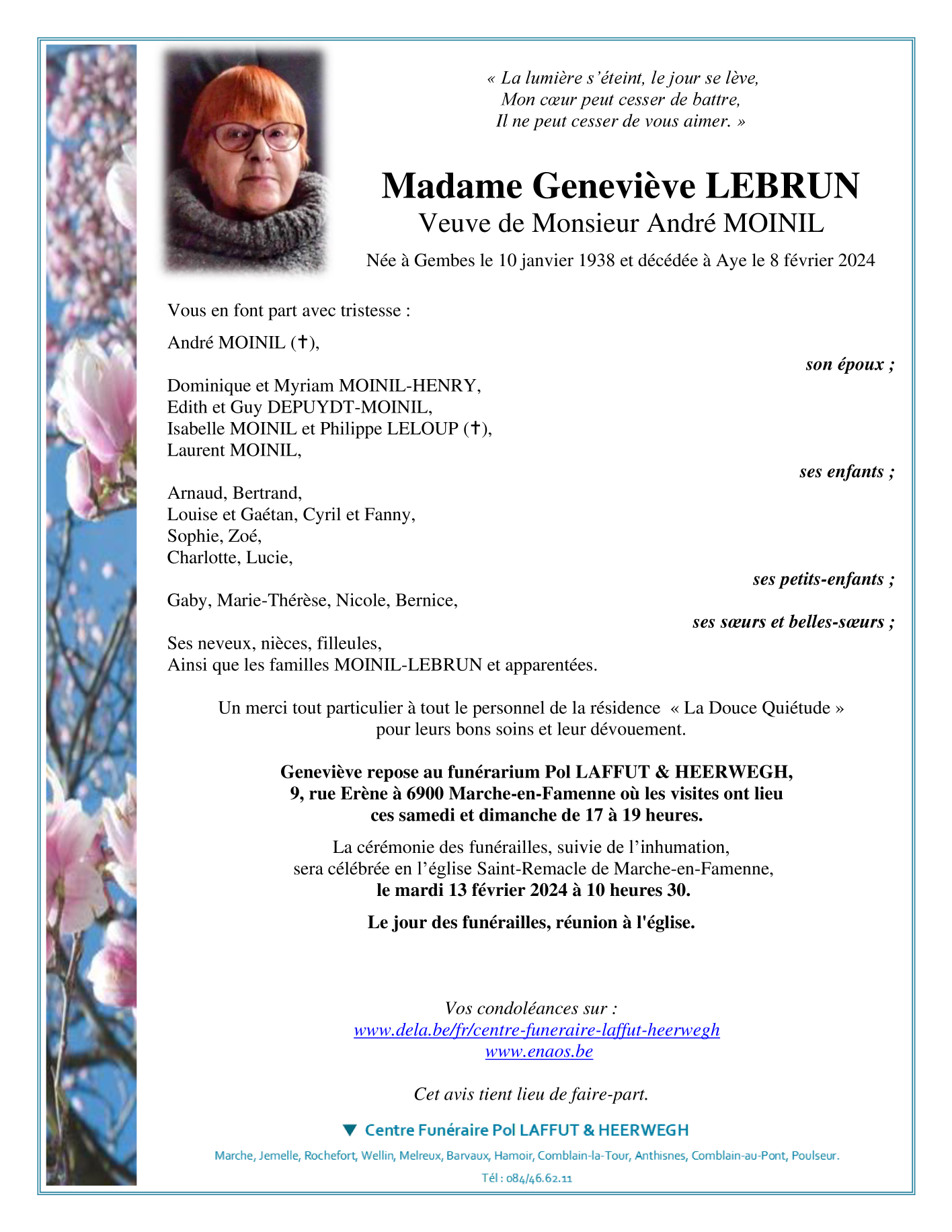 Overleden te Aye (6900) op donderdag 8 februari 2024 op 86-jarige leeftijd