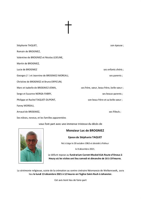Décédé à Polleur (4910) le mercredi 8 décembre 2021 à l'âge de 58 ans