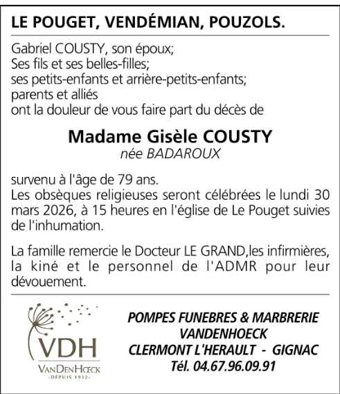 Overleden te Le Pouget (34230, Frankrijk) op woensdag 25 maart 2026 op 79-jarige leeftijd