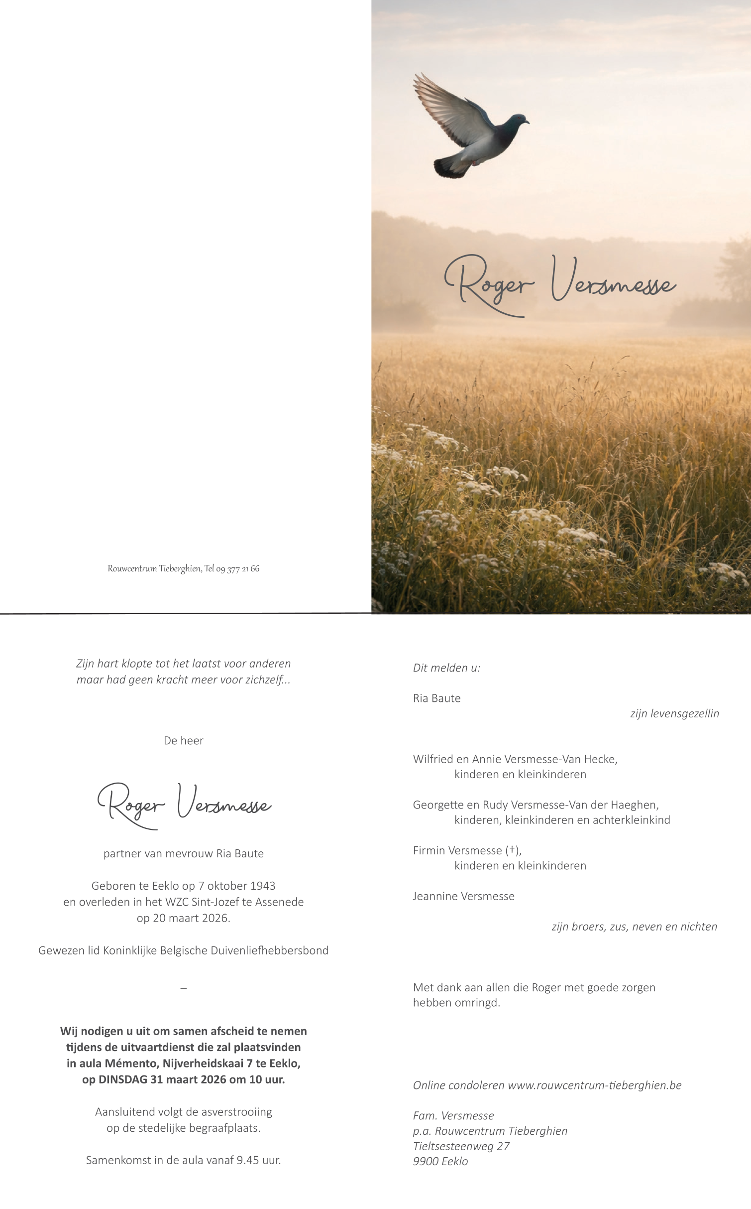 Fallecido en Assenede (9960) el viernes, 20 de marzo de 2026 a la edad de 82 años