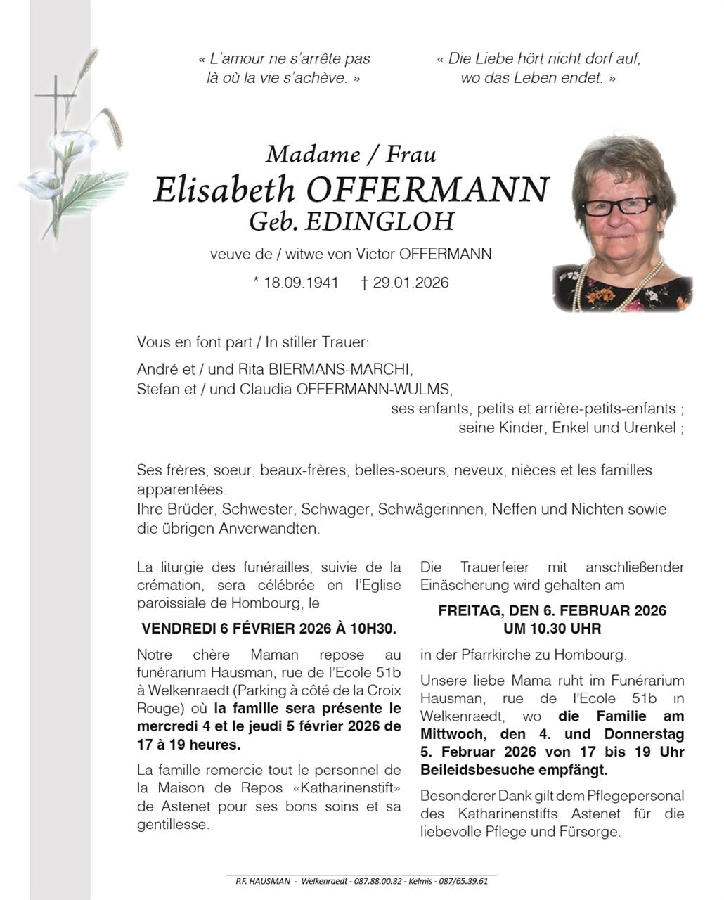 Died in Astenet (4711) on 29 January 2026 at the age of 84 years