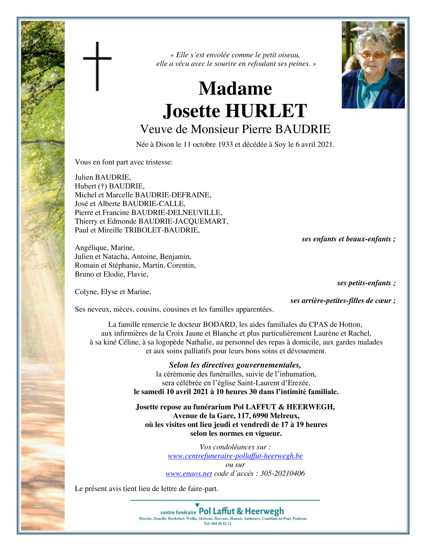 Overleden te Soy (6997) op dinsdag 6 april 2021 op 87-jarige leeftijd