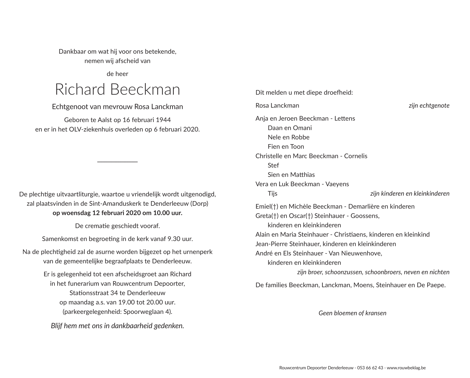 Décédé à Aalst (9300) le jeudi 6 février 2020 à l'âge de 75 ans