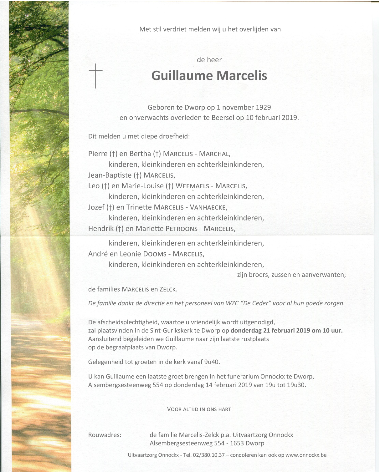 Décédé à Beersel (1650) le dimanche 10 février 2019 à l'âge de 89 ans