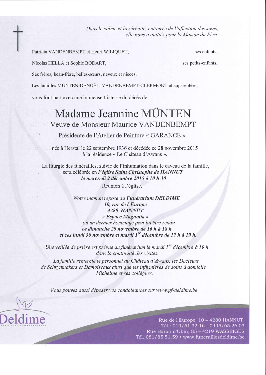 Fallecida en Awans (4340) el sábado, 28 de noviembre de 2015 a la edad de 79 años